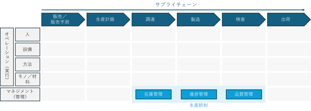 例えば事例Ⅲであれば、下記のような、サプライチェーン×4M(+管理)の2軸を意識しながら与件を読むようにしていました。事例企業の強み/弱みや、ボトルネックがどこにあるのかを構造的に整理ができるように思います。